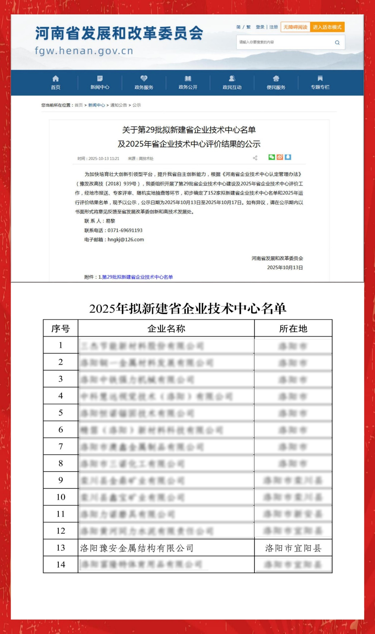 近日,河南省發(fā)展和改革委員會公示第29批擬新建省企業(yè)技術(shù)中心名單,洛陽豫安金屬結(jié)構(gòu)有限公司企業(yè)技術(shù)中心成功入選,標(biāo)志著金屬結(jié)構(gòu)公司在科技創(chuàng)新平臺建設(shè)方面取得又一重要突破。